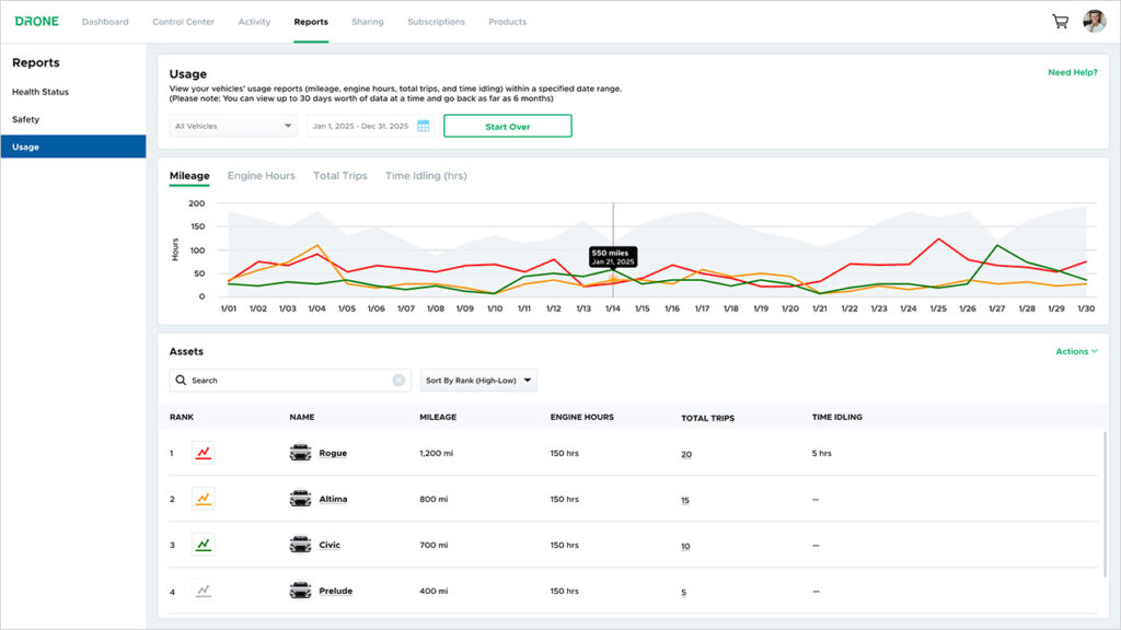 - Usage (our favorite): This essential new feature tracks the mileage and trip data for each of your vehicles that has a GPS-enabled plan, making it easier to monitor vehicle usage, fuel consumption, and driver productivity.